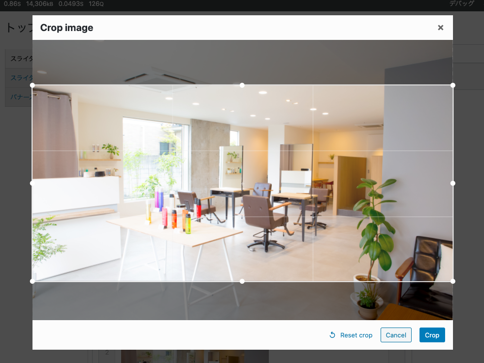 画像をアップロード後、選択すると位置の調整やサイズの調整ができる画面になります。