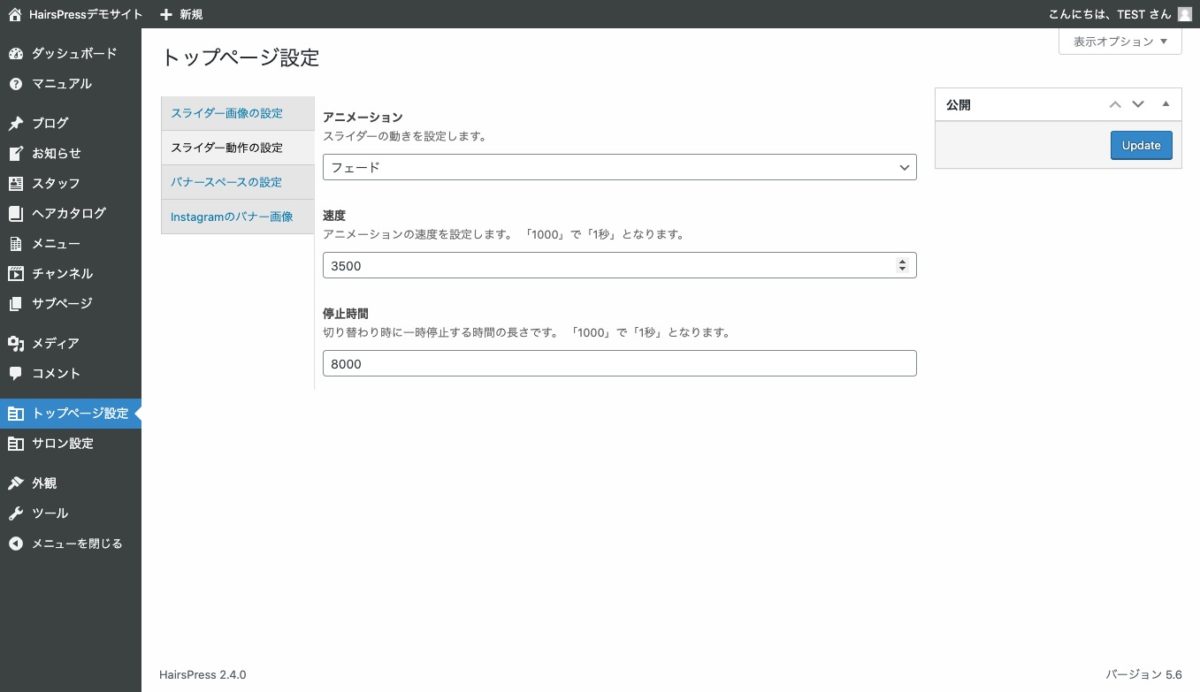 トップページのスライダー画像を設定できます。