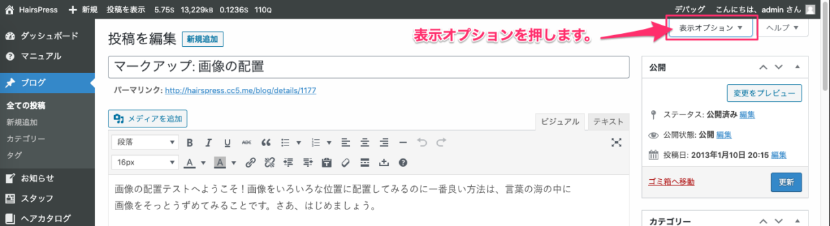 管理画面のダッシュボードについて