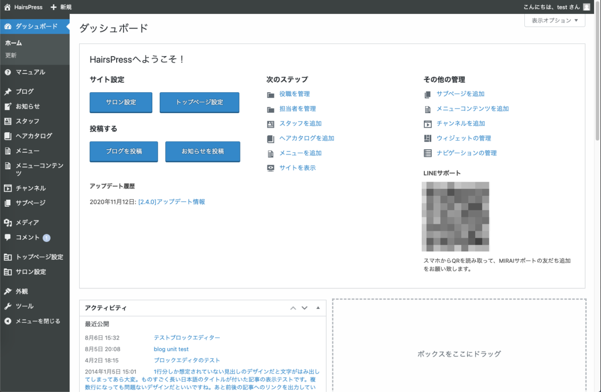 Welcomeボードを作成し、各管理ページへアクセスしやすくなるように、リンクを追加しました。