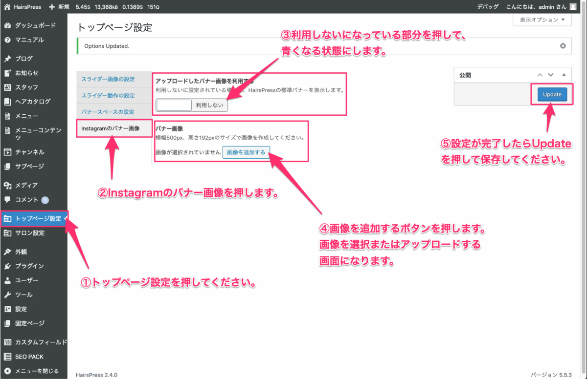 2. トップページのInstagramバナー画像の変更機能