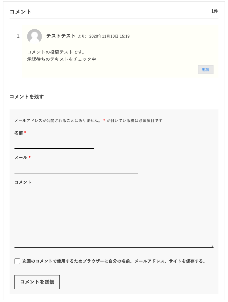 コメント機能は、ブログの投稿にコメントを投稿できる機能です。